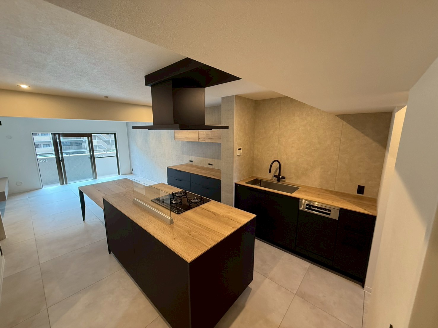 タイルやアクセントクロス、グレイッシュカラーのキッチンなど様々な要素を取り入れつつ、まとまりのある内装にもご注目ください。