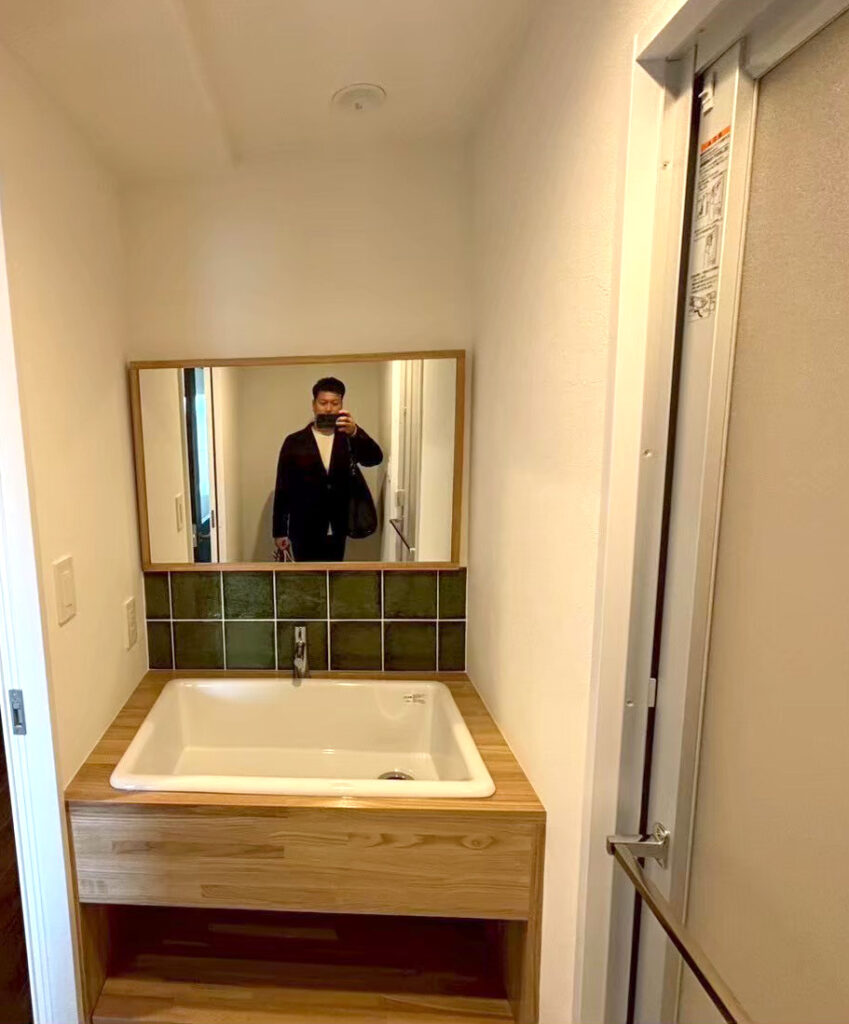 洗面にもタイルをあしらい、住まい全体に統一感をもたせています。